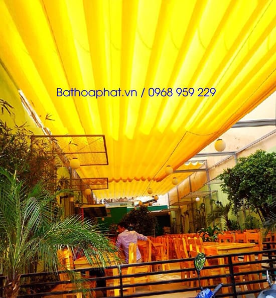 Mái xếp che nắng trước hiên nhà hàng, quán cơm